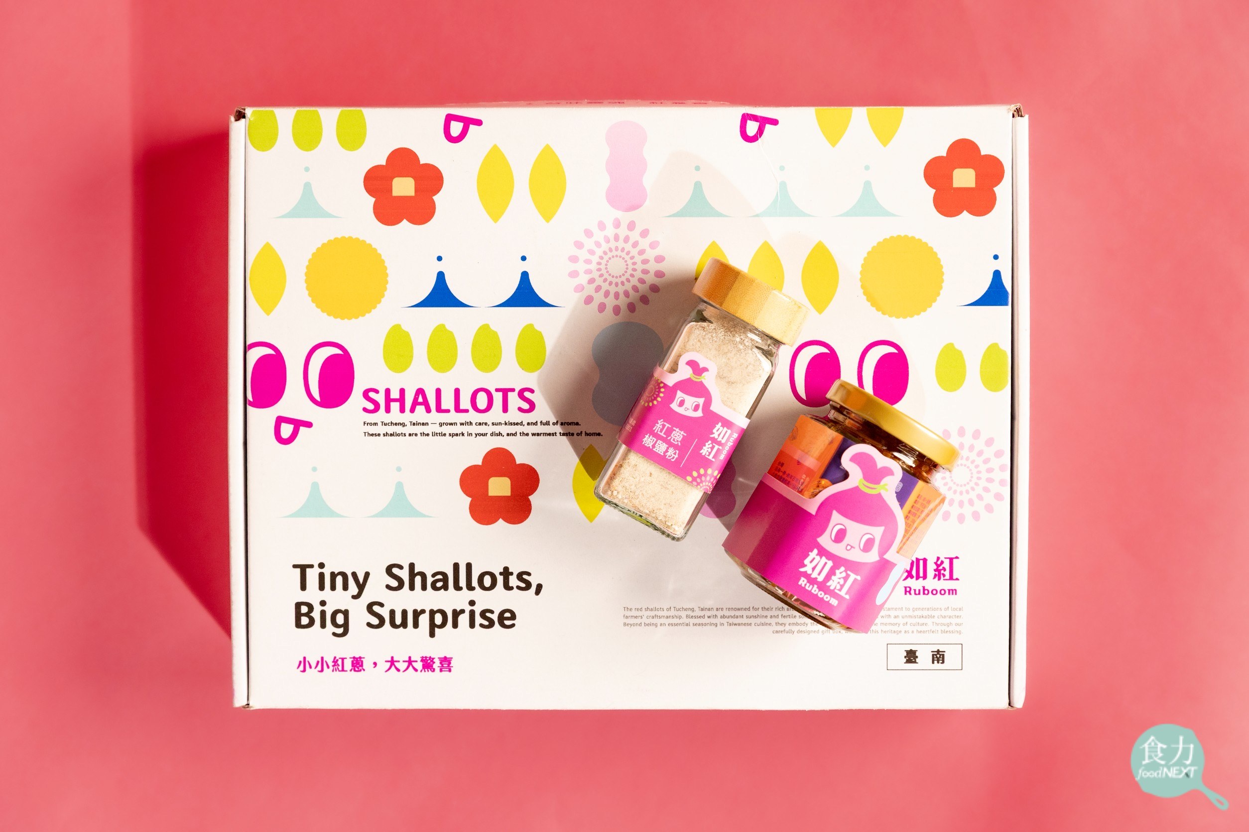 品牌名稱「如紅」的發想十分巧妙,因為紅蔥在台南曾被觀光局譽為「紅寶石」,英文名Ruboom則融合了台語與法語的韻味,更有期望讓紅蔥「氣勢如虹」,成為台灣餐桌上一個具有國際代表性的符號。