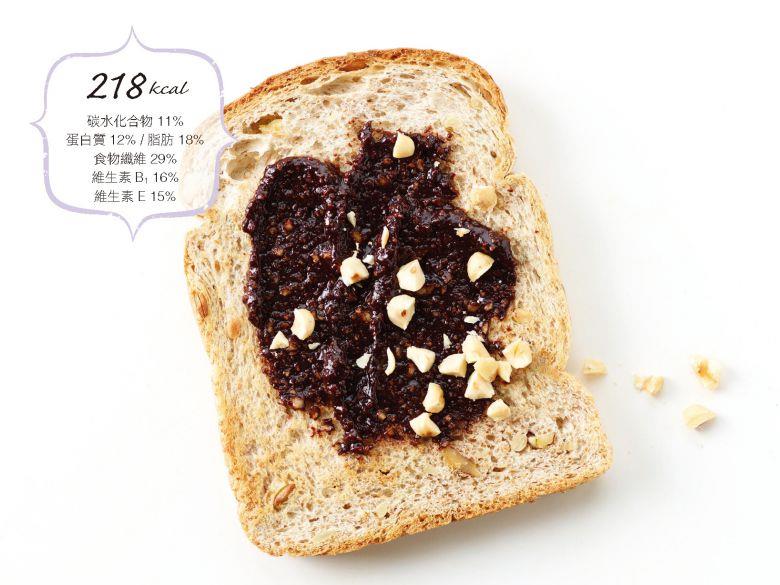 以自製的榛果巧克力醬取代傳統巧克力醬,不僅熱量較低,其中無糖可可粉與榛果,在研磨後散發出的淡苦香味更是無法比擬。