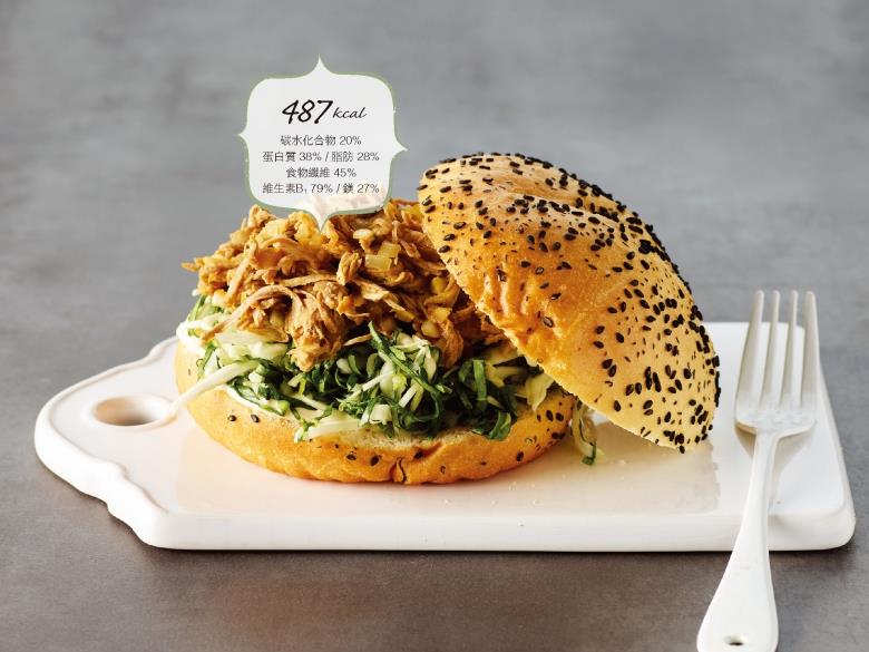 選用豬肉部位中,油脂含量最低的里脊肉,搭配上鹹淡適中的烤肉醬。再加上醃漬出酸甜滋味、口感有如涼拌捲心菜的美生菜和羽衣甘藍,是爽口不油膩的好組合!