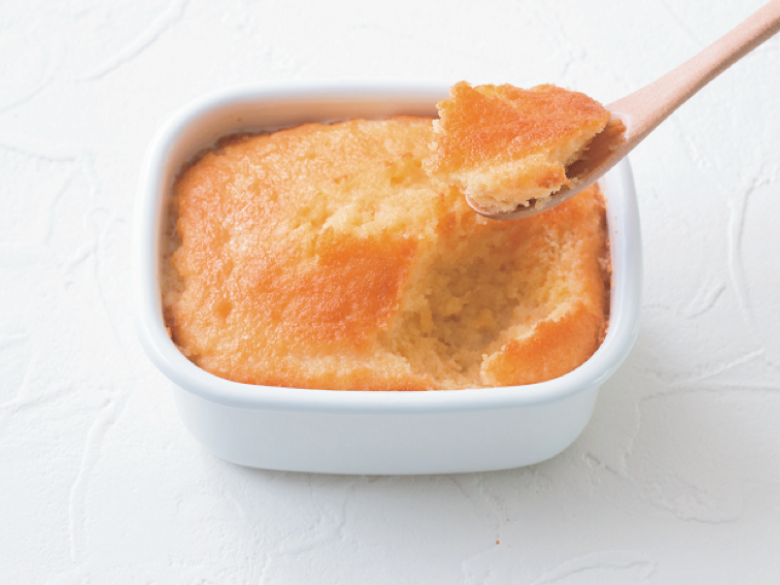 Step 5將材料A的所有材料混合均勻,用湯匙舀起淋在海綿蛋糕上,讓蛋糕慢慢吸收。等到蛋糕將汁液全部吸收後,蓋上保存容器的蓋子,放入冰箱冷藏半天以上。