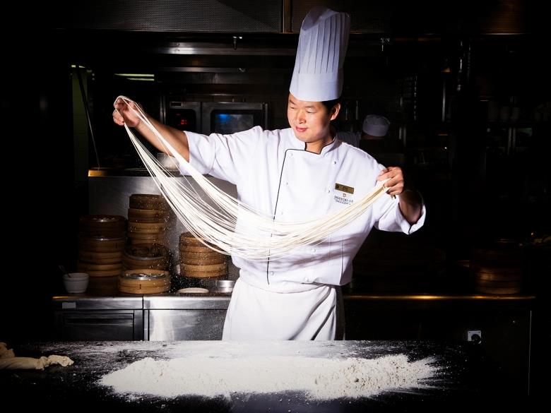 此次活動的另一亮點,是香格里拉台北遠東飯店自助餐廳的麵點主廚馮永田,趁其餐廳改裝之際,從活動開始到2020年9月20日應邀客座。馮主廚是西安人,畢業於陜西烹飪學院,曾受教於當地的麵點大王,有超過15年的資歷,功夫了得,他將在現場製作褲帶麵和刀削麵,提供正宗風味的牛雜麵、西紅柿麵和他在台灣首度烹製的油潑麵。國人較為陌生的油潑麵,是陝西最具代表的家常風味,用多種香料調製的微酸微甜醬汁,先擱進碗裡,再陸續加入現煮的又長又寬的手工褲帶麵、青菜、蒜末、蔥花和辣椒粉,然後將一勺熱油澆潑在麵上,霎時聲響香氣齊揚,拌勻入口,麵筋道、味酸辣,非常過癮!