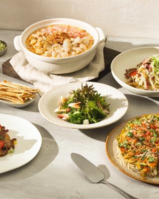 擁有2017紐西蘭國際廚藝大賽冠軍頭銜的主廚陳俊杉率領團隊,嚴選食材,精心製饌,陳俊杉表示,秋天是吃海鮮的大好時節,所以特別讓極受顧客喜愛的手抓海鮮捲土重來!入列品項包括紅潤鮮甜的天使紅蝦、肉厚鮮美的紫扇貝、鮮活Q彈的雲林赤嘴蛤與馬祖淡菜、以及北海岸小卷和蟹腳,搭配德國香腸、炸鳥蛋、甜玉米、花椰菜…等,以最速配的大蒜奶油或是川味椒麻醬調拌上桌,香氣炸開,好吃到停不下來!