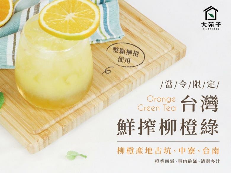 大苑子「台灣鮮搾柳橙綠」,每杯皆採用100%新鮮台灣柳橙,加上茉香綠茶甘甜完美融合,讓台灣鮮搾柳橙綠甜酸適中、清爽順口,同時品嘗柳橙與綠茶的平衡風味,將於2020年9月24日正式回歸!