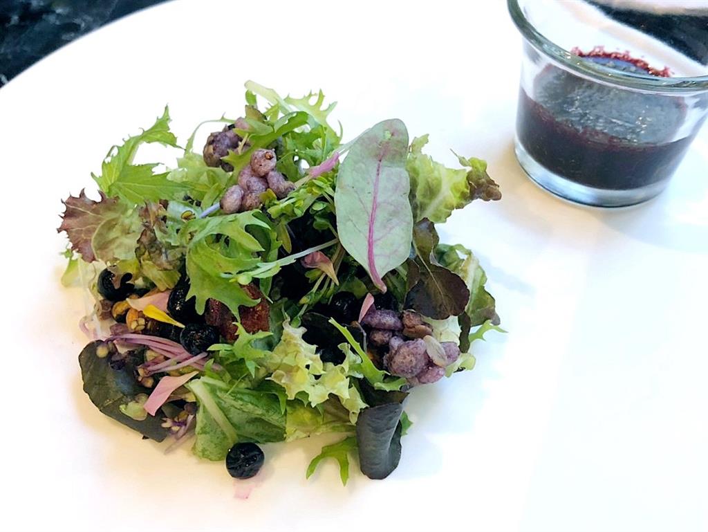 這場「加拿大野生藍莓—北美藍寶石的幸福饗宴」由里仁提供加拿大野生藍莓與有機蔬果,由擅長生活美學的La Moment餐廳來呈現。La Moment的首席輕食料理主廚,依野生藍莓的特性與口感,結合里仁健康、有機的食材,規劃一系列野生藍莓餐點。首先出場的「莓果季節時蔬佐藍莓油醋」與「綜合野莓果昔」,藉藍莓酸甜的滋味喚醒味蕾感官。接續的是主廚別出心裁的「加拿大野藍莓起司燉飯」,巧妙融合藍莓馥郁而輕盈的果香於香濃的起司燉飯之中,達成味覺上的平衡與豐富層次感。最後,「藍莓手工餅乾」、及「鐵定莓事特調咖啡」,為藍莓饗宴提供精彩的提案,也展現出野生藍莓健康價值外的百變新風味。