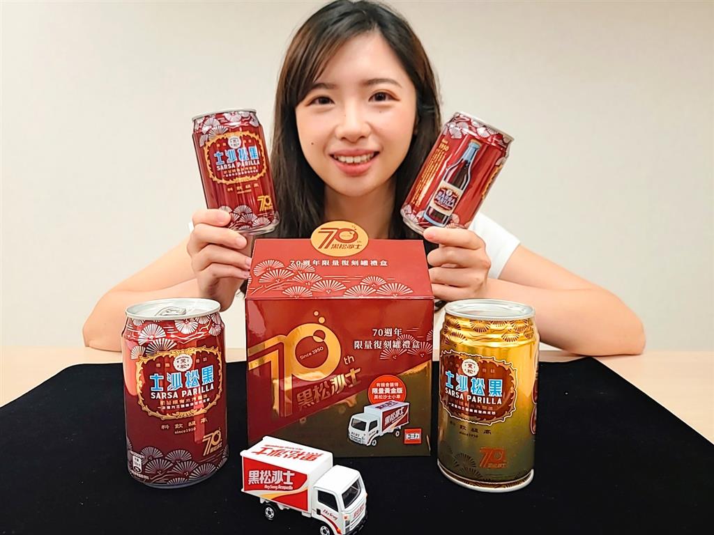 黑松沙士以獨特口感,長期攻佔在地碳酸飲料市場,自1950年上市以來,伴隨各個世代走過每個重要時刻,乘載了許多與台灣共同成長的故事。為紀念70週年慶,特別推出「黑松沙士70週年限量復刻罐禮盒」,內含330ml黑松沙士復刻罐3罐以及Tomica聯名小車1輛。禮盒外包裝以罐身上常見的沙士紅、搭配高雅金色,呈現出一個品牌走過70年的經典榮光,而盒子上70週年Logo,則融入了碳酸飲料產品特性,表達黑松沙士特有的綿密氣泡,藉由3個氣泡由小至大,象徵品牌生生不息,持續往下一個70週年邁進。