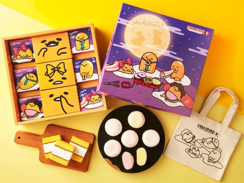COLD STONE今年跨界聯名三麗鷗限量「蛋黃哥懶得過中秋禮盒」,首度力邀蛋黃哥家族,包含蛋黃哥爸爸、媽媽、妹妹及蛋黃哥極致耍萌,以風靡全球『蛋黃哥』的慵懶魅力,完美復刻時下上班族想烤肉又懶得準備的KUSO心理,將超療癒的互動精心設計成限量9款KUSO表情盒,不同特色情境的造型萌力全開,不僅有專屬的超Q限定提盒及提袋,每盒更加碼送「蛋黃哥家族提袋」,超Q的視覺設計,絕對是粉絲必收藏的療癒小物!另一款「圓滿秋意禮盒」則以幾何流行元素設計,完美融合各式結構風格,以圓形為主體,無限延伸秋節圓滿團聚之情誼,玉兔盡情跳月,象徵創造無限可能的月圓美好時刻。