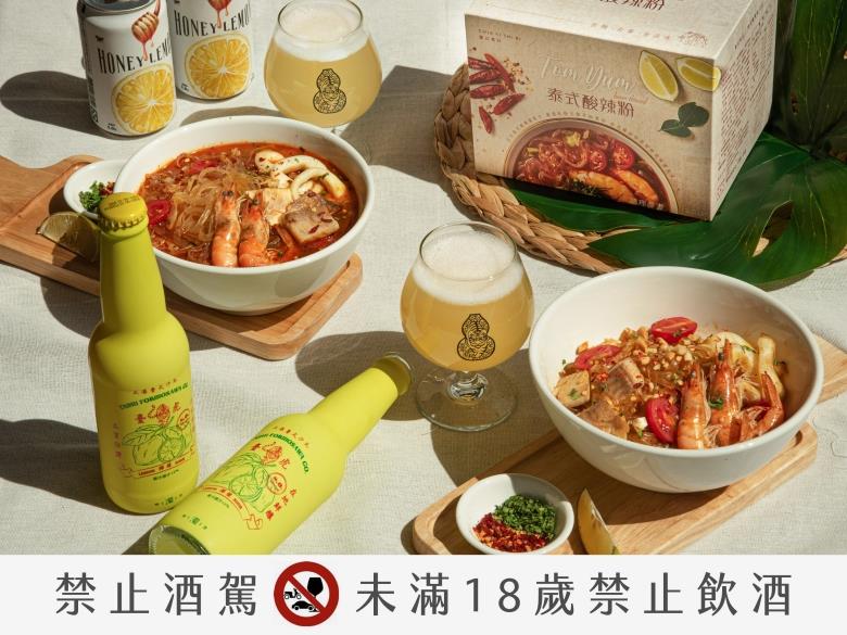 賈以食日首度合作線下餐廳店家,聯手臺虎精釀啜飲室大安店推出夏日限定套餐,結合熱銷麵食料理「泰式酸辣粉」與夏日必喝款「哈尼雷夢艾爾啤酒」、「臺式檸檬沙瓦啤酒」,餐酒相互搭配,酸、辣、香、甜層次疊加、襯托各自風味特色,打造今夏最開胃、爽口的美食饗宴!