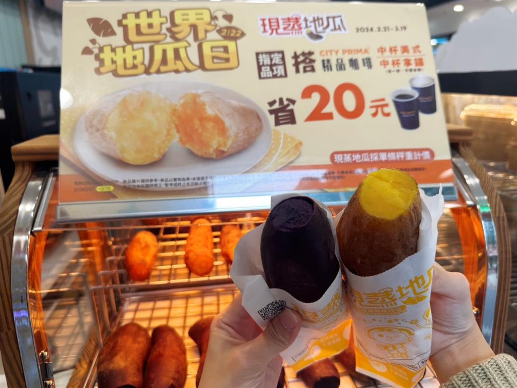 7-ELEVEN指出,像是地瓜和茶葉蛋等原型食物搭配豆漿或咖啡做為簡單正餐受到學生與上班族青睞。熱食自助區的「現蒸地瓜」採用最能完善保存營養的蒸煮方式,具飽足感且冷熱食用皆宜,已於超過4500間門市販售,是市場佈點最密集的地瓜銷售通路。適逢世界地瓜日,自2月21日起7-ELEVEN擴大地瓜相關商品種類、變化多種吃法,祭出系列商品優惠。