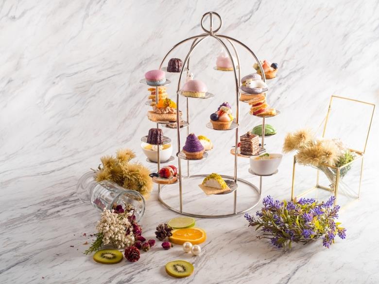 每套雲朵下午茶共有24品繽紛可愛的午茶點心,再搭配2杯270元以內的飲品,超值折扣83折,優惠價只要999元+10%。(圖片來源:六福萬怡酒店提供)
