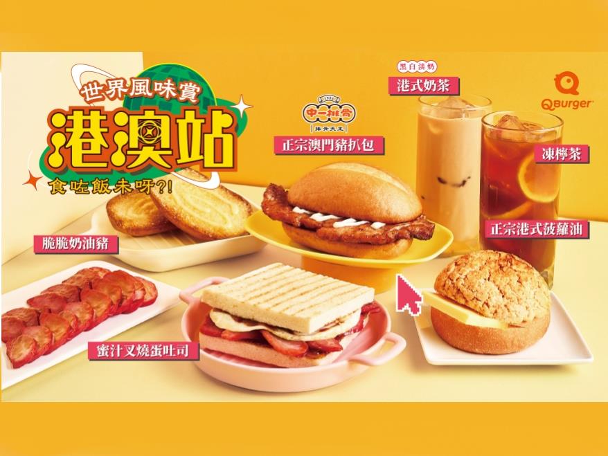 經典佳餚口味最對味,Q Burger世界風味賞從2019年開始,展開第三次「港澳站」巡迴,熱銷破百萬份的港澳早餐由主廚嚴選優質食材,搭配精心研發道地私房醬汁,從細節打造港澳兩地正宗的經典風味小食,征服喜愛港澳風情的饕客味蕾。2024年8月28日起,萬眾期待的全新港澳站於全台正式上市,從完美甜鹹比例的蜜汁叉燒蛋吐司、脆脆奶油豬到濃郁解渴的港式奶茶、凍檸茶,各式精選1+1超值組合,邀請Q粉早晨走進Q Burger享受好味港澳風早午餐,用滿滿活力為開學季應援!