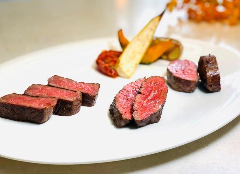 美國Prime濕式熟成30天老饕牛排,老饕牛排為牛肉上蓋肉,為精華部位,稀少珍貴,富含油花如大理石般分佈,肉質軟嫩適口,主廚簡單調味後,以上火高溫烘烤,再放入煙燻箱燻製,上桌前烤至理想熟度,脂香四溢卻不膩口,每一口都散發出鮮甜牛肉風味;美國Prime乾式熟成21天肋眼心,嚴選來自美國天然飼養產出的高品質牛肉,細緻不膩口,以800至1000度烤製,高溫瞬間將肉汁鎖住,再放入保溫箱中以48度回溫及煙燻,賦予牛肉獨有風味,再用平板煎至理想熟度,靜置5到10分鐘,使中心高溫均勻傳播至整片牛排;美國Prime濕式熟成30天菲力牛排,菲力牛肉取自整頭牛隻前脊肉,一般俗稱腰內肉,是牛排料理中的點餐NO.1,將美國菲力牛排濕式熟成30天,風味更臻完美,牛排經過烙痕、煙燻及烤製,肉質滑嫩,炭烤甜美鮮味在口中滿溢。