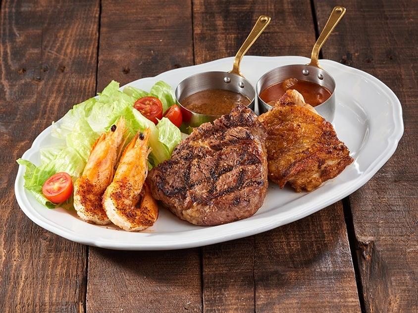 七夕全餐點買1送1活動的樂雅樂經典牛排主餐,首推2020年Royal Host樂雅樂家庭餐廳海陸餐點點購熱銷排行TOP 3,「奢華龍蝦牛排」選用波士頓龍蝦,肉質豐厚,鮮Q飽滿,口感細緻,搭配鮮美的紐西蘭沙朗牛排,頂級美味一次滿足;「香煎牛排干貝」選用紐西蘭草飼牛的沙朗牛排,經高溫碳烤,帶有扎實嚼勁口感,搭配鮮甜美味的北海道3S大干貝,超豪華海陸組合;「沙朗牛排鮮蔬海鮮拼盤」一次品嚐軟嫩口感的沙朗牛排、香煎Q彈藍鑽蝦、多汁香料雞排,絕對是饕客愛不釋手的海陸經典料理。