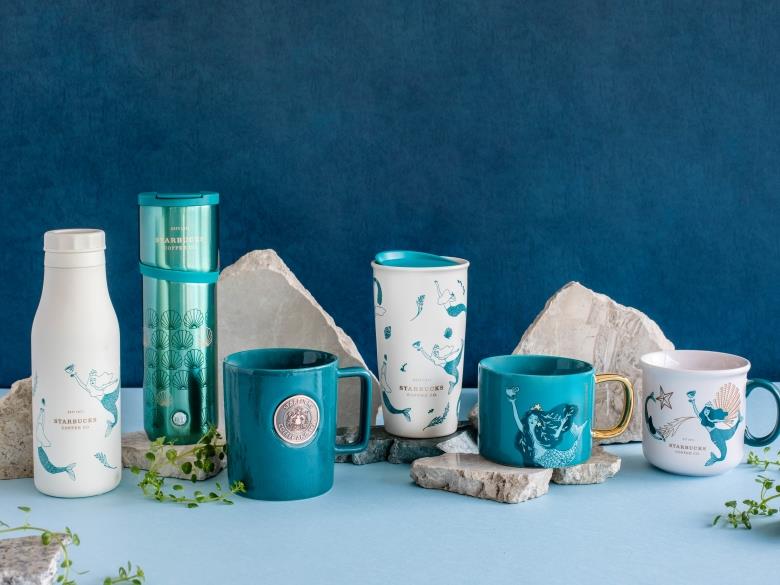本次檔期也同步上市以星巴克美麗的Siren女神為靈感的系列新品,選用清新溫暖的米色、星巴克經典的海洋藍綠色,以及柔美的粉色,並將美麗的魚尾、耀眼的貝殼融入各式日常好用的生活器皿中,女神在海洋中徜徉悠遊的身影令人神往,同步於2020年9月16日門市與線上門市推出。