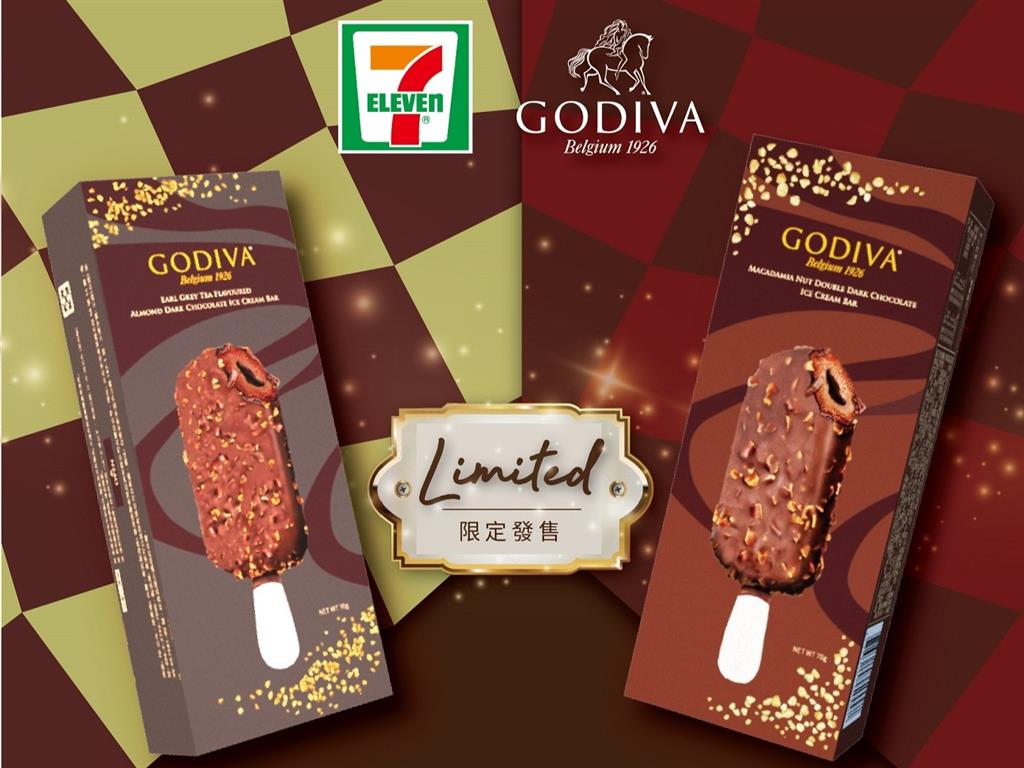 GODIVA黑巧克力流心雪糕已於7-ELEVEN上市,2款口味為「伯爵茶杏仁黑巧流心雪糕」和「夏威夷果仁黑巧流心雪糕」,即日起至2020年7月5日,拍照打卡並Hashtag,即有機會獲得1年份的限量雪糕及巧克力禮盒。