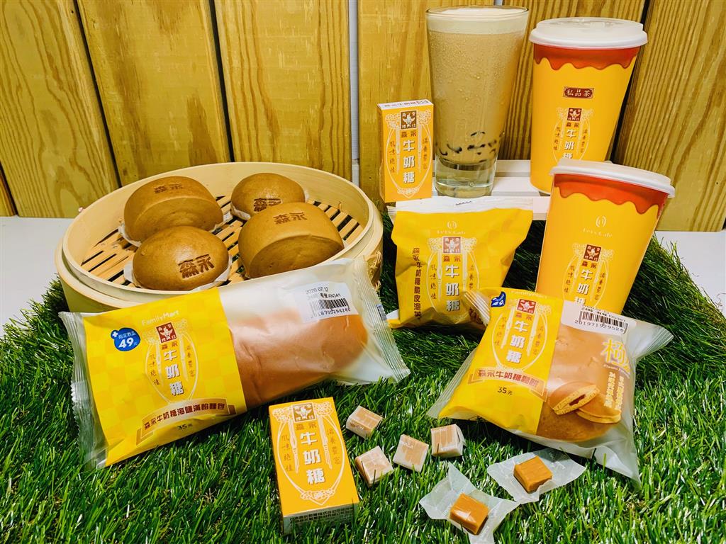 全家便利商店首度和台灣森永製菓股份有限公司合作,推出9款聯名商品,包括Let’s Café「冰森永牛奶糖拿鐵」和「冰森永牛奶糖Q奶茶」,以及甜點麵包、飲料、冰品,同步換上森永的經典黃、橘色外包裝,讓大人回味、小孩嚐鮮,即日起至2020年8月11日凡購買指定森永聯名商品,以10元加價即可購買森永牛奶糖1盒。