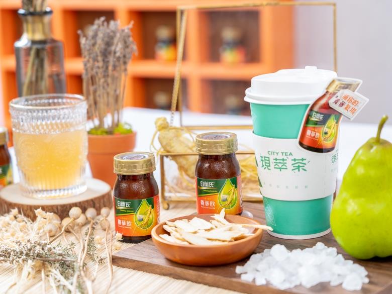 白蘭氏養蔘飲攜手超商通路7-ELEVEN,將補氣最佳夥伴白蘭氏養蔘飲冰糖燉梨加入深受消費者喜愛的「CITY TEA現萃茶」現做茶飲系列中,在消費者最需要補氣的秋季推出期間限定「養蔘四季春青茶」。