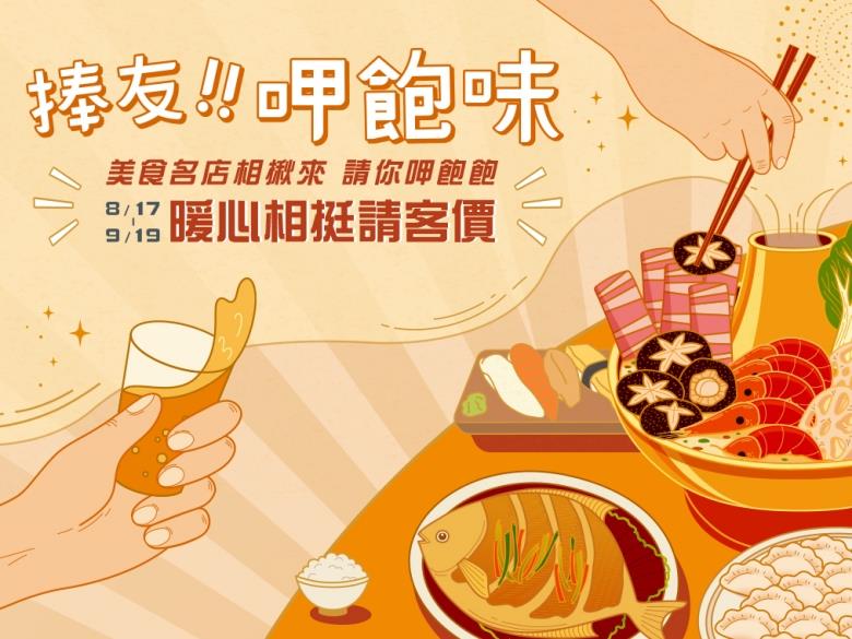 國內多家知名餐飲品牌聯手,透過跨品牌結盟與資源共享組成「舌尖會」,今年因遇上疫情,當中25家餐飲品牌宣布共同推出為期一個月的限時優惠活動,各品牌齊心回饋社會,釋出最大心意,盼消費者回流上門,搶攻解封後報復性美食商機。邀請大家一起關心許久未相聚的家人、朋友、同事們,用最有人情味的互動語說一聲「捧友,呷飽味!」,讓美味的感動,串聯你我的情感。即日起至2021年9月19日止,近30款精選人氣暢銷商品限時下殺優惠,包含:餐廳美食、咖啡、飲料、沖泡飲品、點心零食、烘焙食品、冷凍食品與調理包類、伴手禮等多元品項。