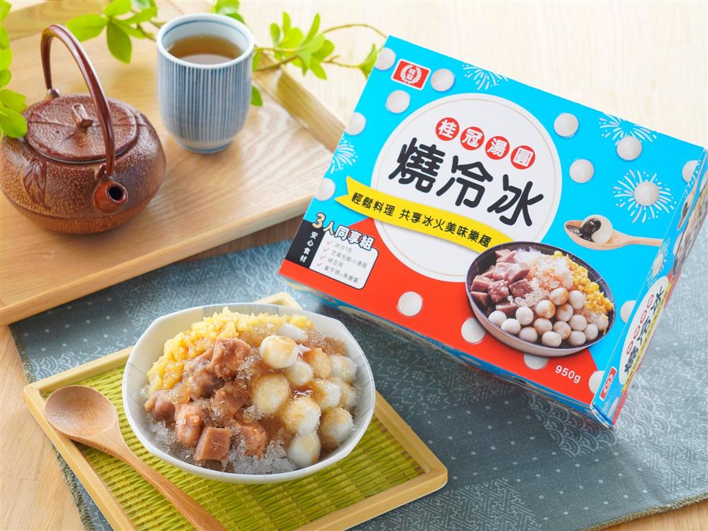 桂冠新推出夏季限量的「桂冠湯圓燒冷冰」,考量有別於坊間多半只用包餡大湯圓,或是無餡料的白色小湯圓,規劃使用芝麻包餡小湯圓,小小一口好食用,與配料比例又有適當搭配,讓喜愛吃湯圓的消費者可盡情享用。此外,配料中還有使用台灣在地芋頭所精心熬煮的蜜芋頭,以及必備的綠豆蒜,最後在淋上甜而不膩的黑糖醬汁,那種外Q內軟多層次的冰火口感,讓消費者在家僅需10分鐘烹煮與復熱即可輕鬆上桌,同時更適合親子一起共廚,享受DIY的冰火樂趣。