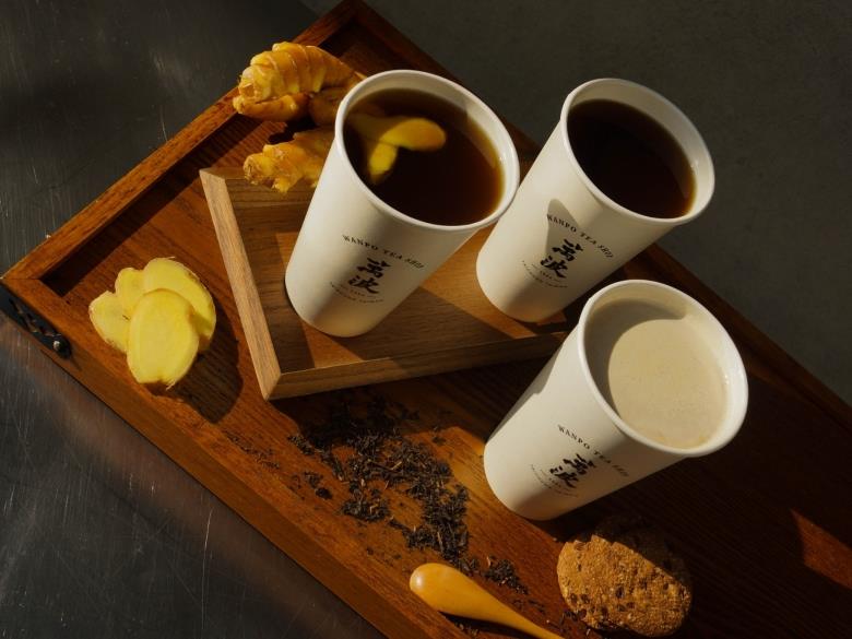 萬波新推出的薑汁系列,都是用嚴選的老薑手工熬煮成薑汁,並以薑汁為主軸,延伸出「黑糖薑茶」、「薑汁紅茶」、「薑汁撞奶」3款系列飲品。(圖片來源:萬波島嶼紅茶提供)