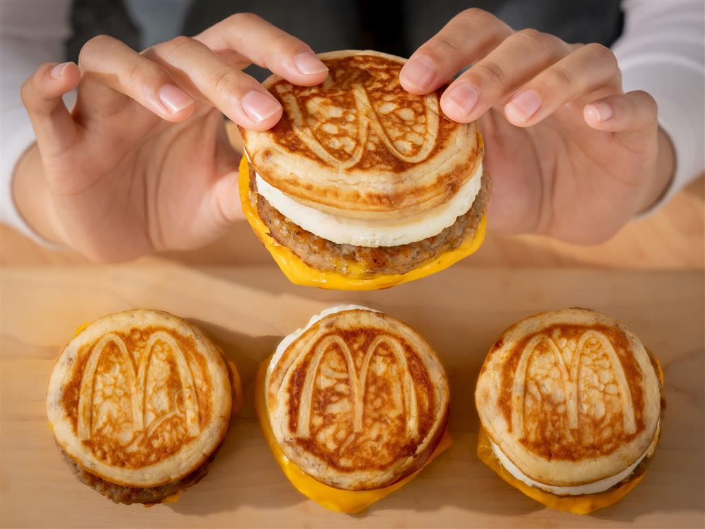 印有麥當勞logo的楓糖風味厚鬆餅,搭配麥當勞早餐的經典食材,搶攻喜愛麥當勞早餐顧客的味蕾。(圖片來源:麥當勞提供)