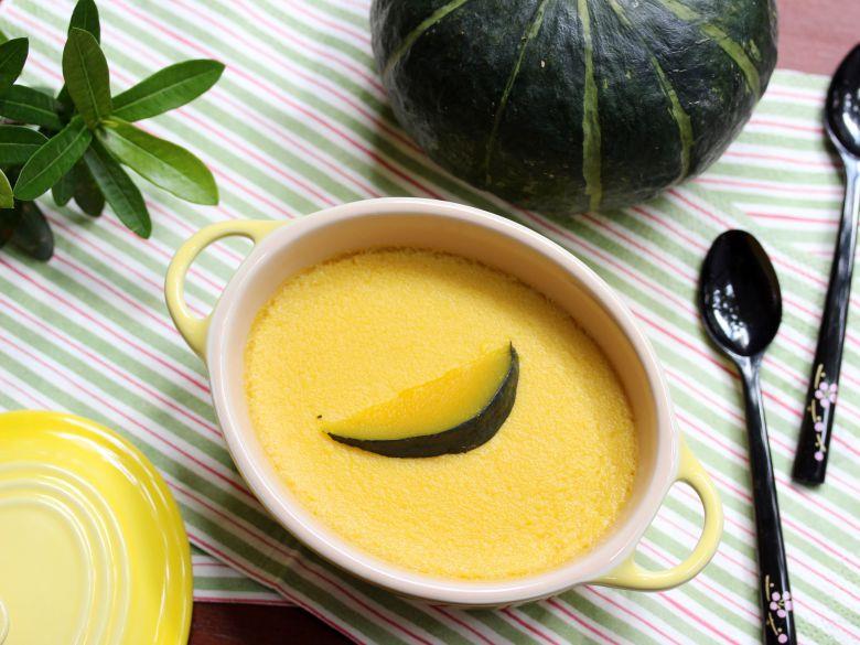 Tips.這款加了南瓜泥的布丁,因帶有纖維所以蒸起來的表面稍微不平整為正常。
