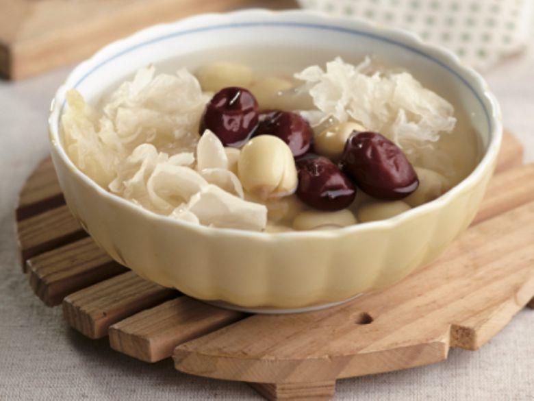 紅棗蓮子木耳湯中的蓮子要去芯,不然湯汁會苦苦的,此外冰糖要等蓮子煮到軟度適中後再放入。