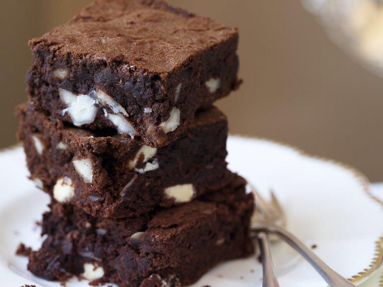 布朗尼的特色就是蛋糕體中心要柔軟濕潤,這樣的口感是透過將蛋跟糖打至慕斯狀,並且烘烤時只將頂部烤脆。注意不要烤過頭了,不然就會失去油脂豐厚的口感,變成普通的蛋糕。