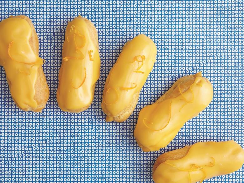 這種閃電泡芙的焦糖奶油餡和糖霜內,流露出一股橘子香氣。你可以使用現搾的橘子汁,或是市售的也行。你也可以用柳橙皮絲裝飾,甚至換成不同風味的柳橙汁也可以。