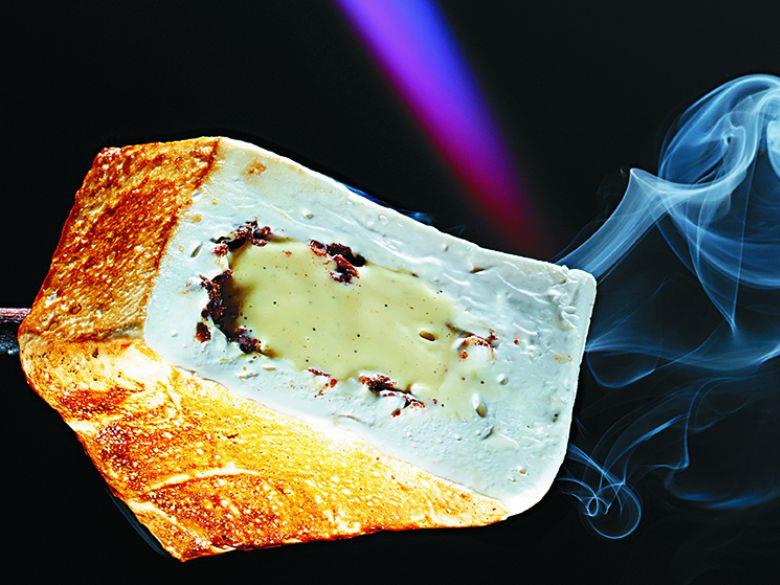 Step 1從冷凍庫取出烤棉花糖,每個都從中央插上樹枝或棍子。噴槍尖端距離烤棉花糖7.5到10公分(3到4吋),燒烤棉花糖的表面。立刻食用。