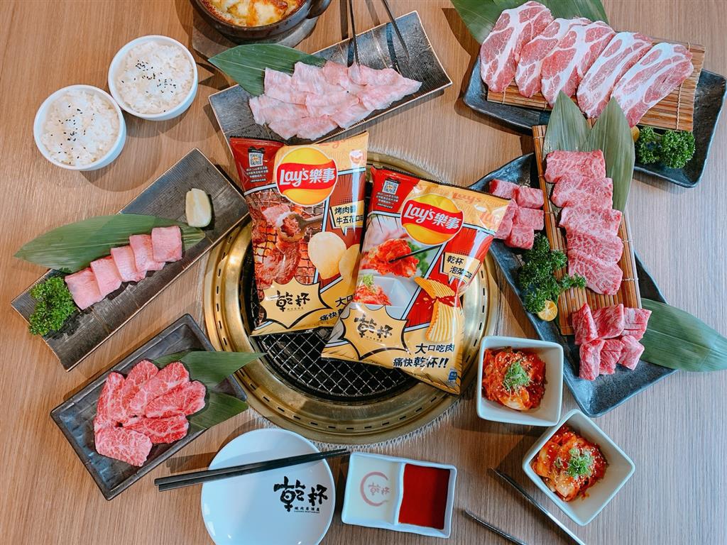 「乾杯燒肉居酒屋」攜手零食品牌「樂事」,合作推出「烤肉醬牛五花」、「乾杯泡菜」2款人氣口味洋芋片。此外,消費者可掃描包裝上的QR Code,至「乾杯」享獨家優惠。