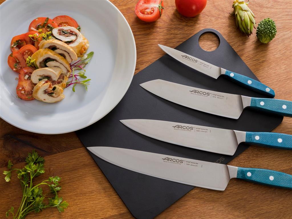 美女主廚Joanna劉韋彤擅長將法式精神融入中式料理,簡化步驟,加入特色食材,提升視覺美感及味蕾上的享受,而為了增加料理細緻度,在刀具的選擇上也不容馬虎,挑選刀具的第一守則就是耐久、多功能、好保養,而ARCOS阿科斯擁有西班牙300年歷史,品質受到保證,更是米其林主廚的愛用刀。使用NITRUM獨家不鏽鋼刀片,添加氮於不鏽鋼中,使刀片硬度高更耐用;一體成型的刀身弧度優美握感平穩,人體工學刀柄好握好施力,長時間使用下來手指跟手腕也不會累。為了迎接夏日的到來,Joanna劉韋彤將私房舒活料理「醃漬番茄佐帕瑪火腿雞⾁卷」推薦給想要提升刀功製作精緻料理的人。