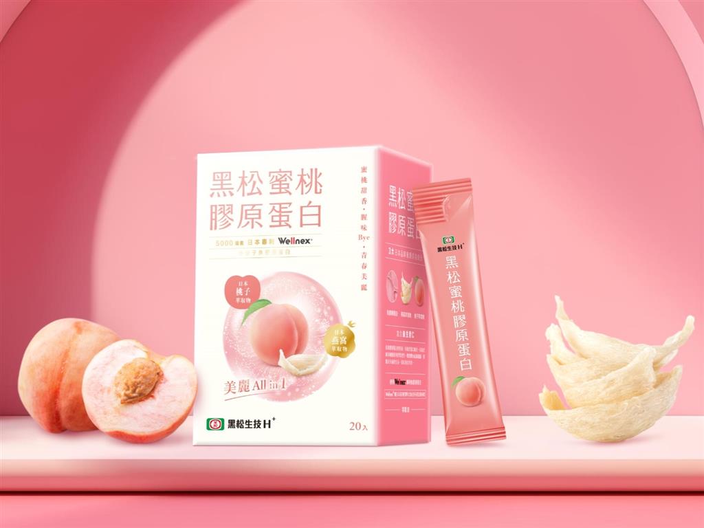 黑松旗下「黑松生技H⁺」進軍保健食品產業4年,看準愛美消費群體帶來的效益,推出首支美容系保健品「黑松蜜桃膠原蛋白」。結合膠原蛋白、神經醯胺及燕窩三大美元素,搭配蜜桃與玫瑰香氣好擺脫膠原蛋白傳統氣味,撕開就能入口保養好簡單!