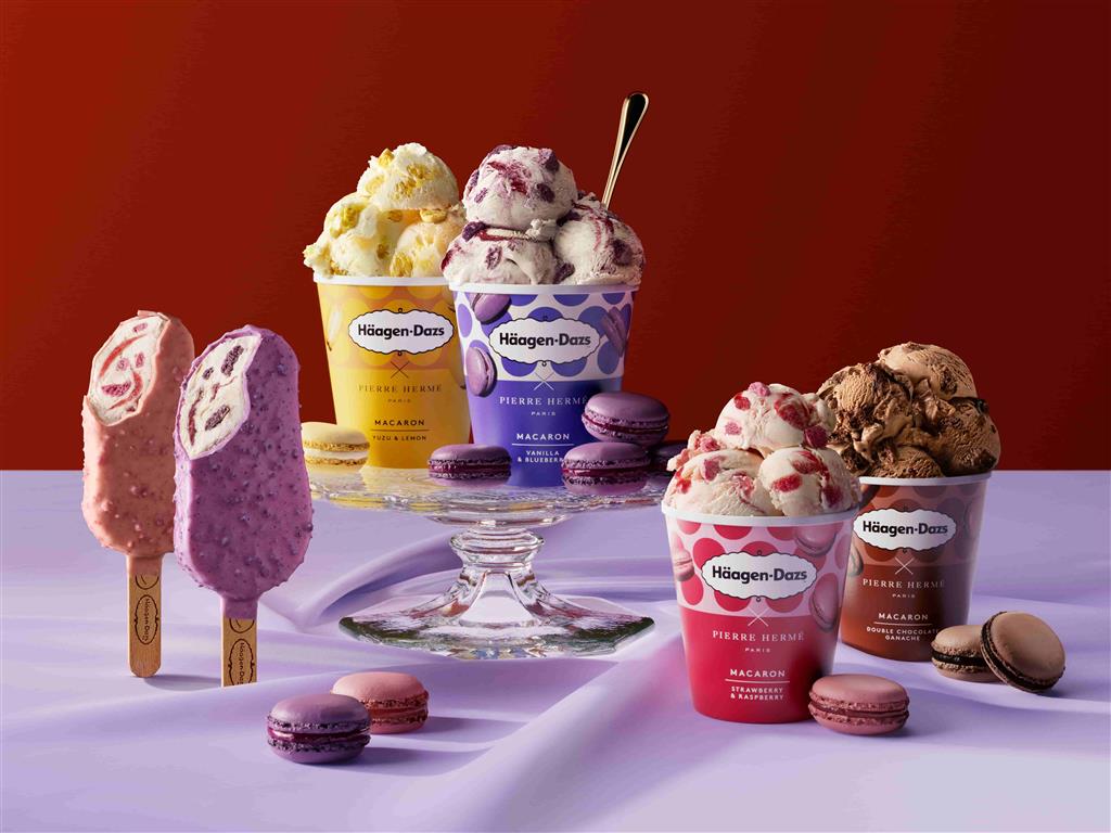 哈根達斯再度攜手馬卡龍大師Pierre Hermé,推出新品「香草藍莓馬卡龍冰淇淋」,並結合經典3款「馬卡龍冰淇淋」與2款濃郁法式風味的「馬卡龍脆皮雪糕」。迎接炎炎夏日,更有新品出5款美味的「冰淇淋凍飲」,一解炎熱暑氣。