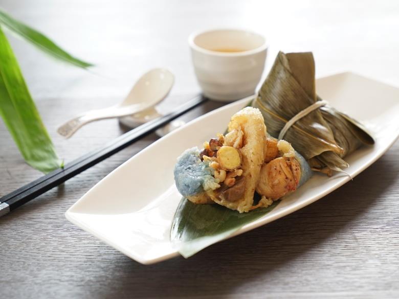 除「江南東坡荷葉粽」、「蝶豆娘惹雙色粽」外,台中福華大飯店也將傳統好粽保留,像是「湖州瑤柱一品粽」以南部粽水煮方式呈現,粽米選用圓糯米,內餡採醃漬12小時且油花均勻的梅花肉,搭配上瑤柱、九孔鮑、花膠等一流食材,熬煮約3小時,堆疊醇厚滋味;「薑黃天貝羅漢粽」為素粽,將長糯米蒸熟後再以薑黃上色,呈現金黃討喜色澤,內餡選用富含蛋白質的天貝、蓮子、杏鮑菇、栗子及烤麩等,並以麻油拌炒,吃來帶上麻油香,更添風味。.