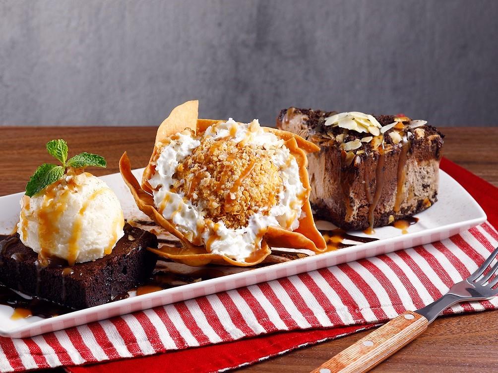特殊炸彈造型經典甜點,重磅回歸!「炸彈冰淇淋」擁有硬漢一般個性十足又吸睛的外型,嚐進口中暖男本質立現,令人愛不釋手,吃過一次就上癮。香草冰淇淋裹上肉桂玉米片後油炸,再放入炸過後的墨西哥餅內,擠入泡沫奶油,最後淋上焦糖醬,撒上核桃碎片及肉桂粉,一口咬下前所未有的驚奇感在口中瞬間綻放!