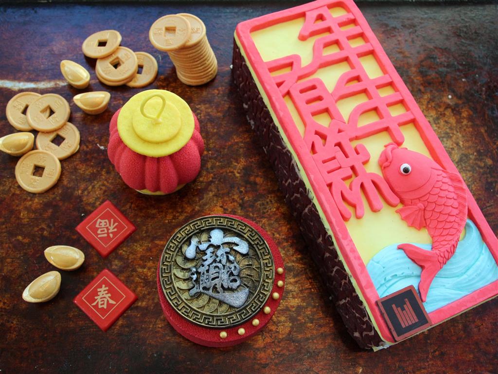「年年有芋」芋頭起司蛋糕,金魚春聯的討喜外型內,呈現芋頭內餡、戚風蛋糕、起士慕斯交織的美妙滋味,特別是濃郁醇厚的芋香,讓人一口接一口,自2020年1月17日起提供至2020年1月31日,季節限定。