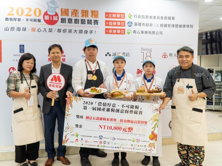 2020年9月12日經國管理暨健康學院舉辦「農情厚意、不可限糧」五穀雜糧米漢堡競賽,希望更多學生跟餐廳廚師認識國產雜糧,進而在未來的餐點發想使用,不僅推廣國產雜糧作物,更能將在校學習到的食材原理、料理技術與業界接軌,發展出消費者喜愛又健康的產品,一起為提升糧食自給率盡一份心力。