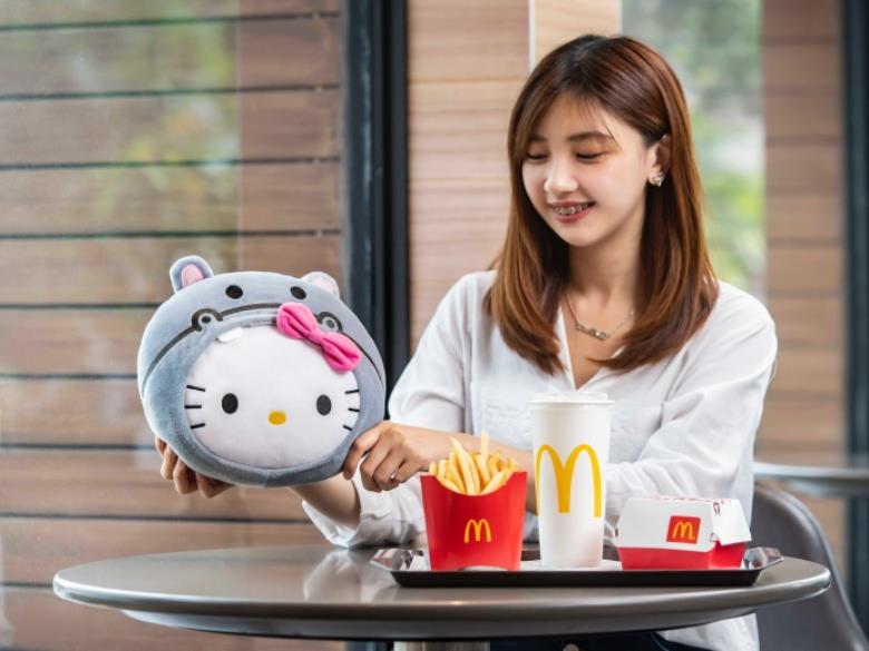 2019台灣麥當勞X Hello Kitty全新聯名系列抱枕「萌獸探險趣抱枕」,2019年5月15日起,凡於餐廳內購買任何套餐加價299元,即可獲得乙個,且全台限量12萬個。