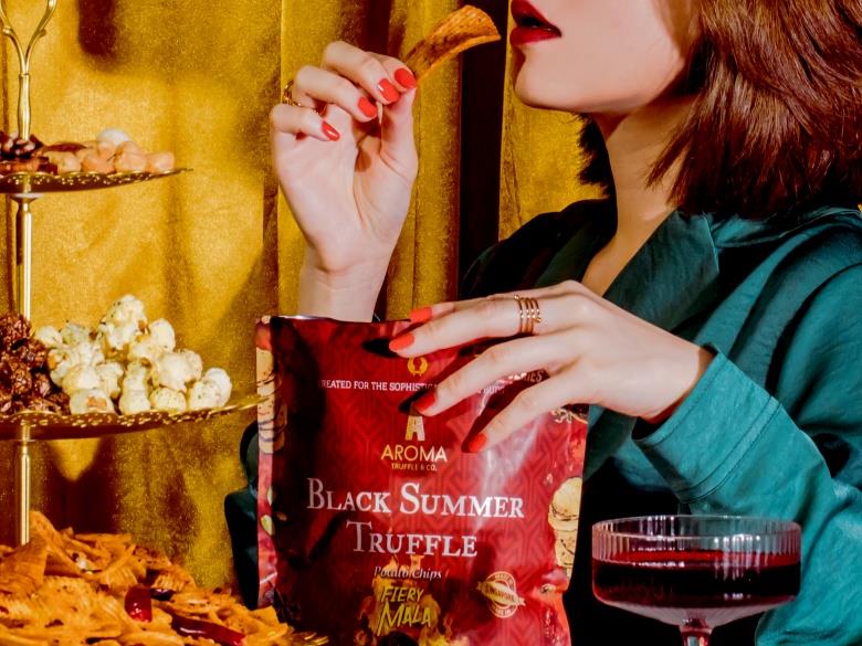 Aroma Truffle在台推出首款中西融合的新品「頂級麻辣黑松露洋芋片」。(圖片來源:Aroma Truffle提供)