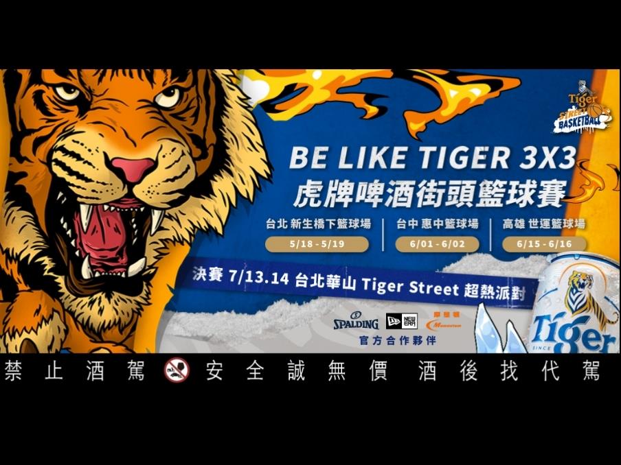 首屆「BE LIKE TIGER 3X3虎牌啤酒街頭籃球賽」將在5月份起分別舉辦北、中、南區預賽,並於7月13日至7月14日在第三屆「Tiger Street 超熱派對」架設的大型舞台進行決賽。只要不是各大賽事職業選手或現役UBA球員,年滿18歲以上並愛好籃球運動之民眾皆可報名參加,決賽總獎項價值高達50萬元,冠軍全隊更將獲得美國職業籃球賽之旅,由虎牌啤酒提供來回機票、住宿及球賽門票,前往籃球最高殿堂!詳情請至虎牌啤酒Instagram查詢。