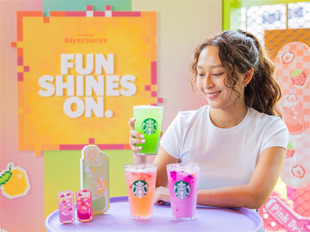 星巴克於2024年6月12日至7月23日在台北時代門市「FUN SHINES ON !」單店限定活動,以星沁爽繽紛的色彩元素,打造具有生活感的拍照打卡裝置,營造夏日玩樂心情。(圖片來源:星巴克提供)