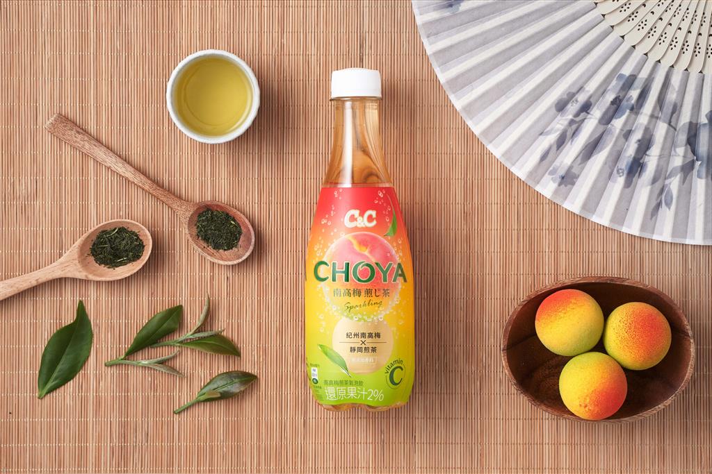 C&C嚴選CHOYA紀州南高梅搭配日本靜岡煎茶,再加上沁爽的碳酸氣泡,讓口感層次更豐富,全台限量18萬瓶,2023年6月28日起於全家便利商店獨家販售。