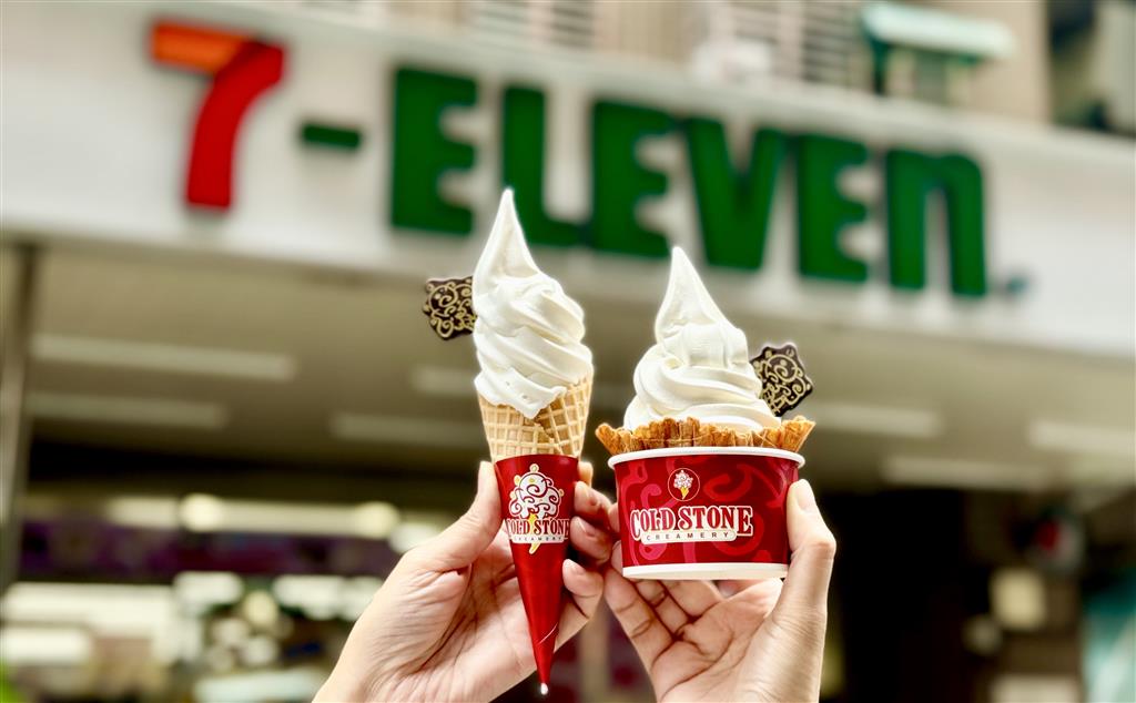 7-ELEVEN表示,COLD STONE複合店將冰淇淋專賣店擠進1坪的空間,現點現做最快不到1分鐘就能品嚐到創意冰淇淋料理;「酷聖石霜淇淋」首波口味於2024年8月14日陸續重磅亮相,延續酷聖石冰淇淋奶香特色推出「厚乳霜淇淋」口味,使用酷聖石高品質冰淇淋基底製作,搭配脆皮甜筒、酷聖石形象杯套,經典重現COLD STONE,每支售價59元, 2024年8月14日起購買酷聖石霜淇淋系列一支還免費贈送酷聖石Logo可可糖片,數量有限、贈完為止。不僅如此,為滿足顧客消暑需求,更推出以冰淇淋mix霜淇淋的「獨創聖代」,可隨自身喜好任意搭配,好吃好拍、美味吸睛!