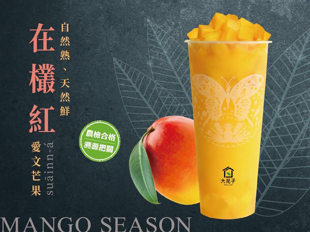 此次搶先全台上市的大杯愛文芒果冰沙,不僅僅是搶先同業推出2020年最早的愛文芒果冰沙,大苑子所採用的在欉紅愛文芒果,更是領先業界,期望讓香氣最濃郁、口味最實在的自然熟、天然鮮愛文芒果,在製成芒果冰沙,並且搭配誠意十足、滿滿的新鮮芒果丁後,能真正滿足喜愛芒果的粉絲,甚至滿足許多經常喝不夠的朋友。