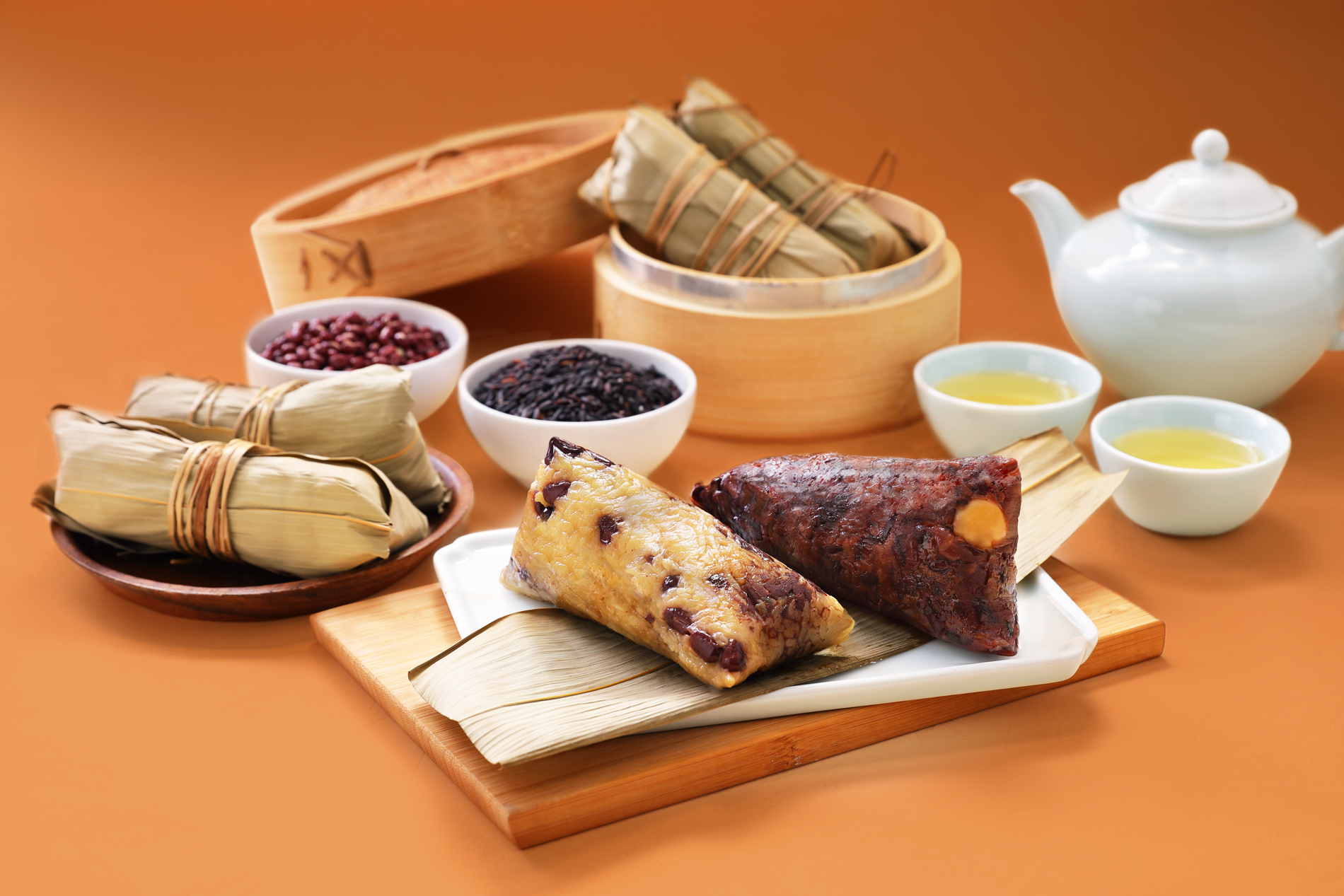 亞都麗緻經典款「芙蓉紅豆粽」與「紫米桂圓粽」。(圖片來源:麗緻餐旅集團提供)