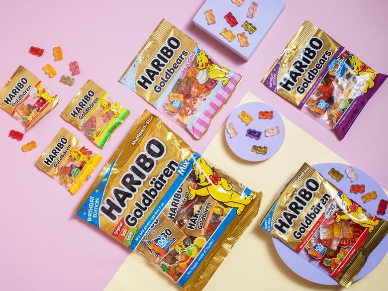 小熊粉指名必收百年限定款是「哈瑞寶綜合金熊Q軟糖分享包」!除了經典款、酸甜款,更有台灣市場買不到的25%果汁款,Juicy更Q軟的口感,讓人不得不愛。最適合點綴小熊在各式甜點、飲料、沙拉中,瞬間美味升級,各式場合歡樂氣氛超級嗨!如不只想品嘗小熊造型軟糖,還可以選擇「哈瑞寶明星總動員Q軟糖」,內含歐美小孩告白必備的「定情道具」戒指與愛心造型Q軟糖等5種造型,可愛到讓人忍不住大聲說:「Yes, I do!」。