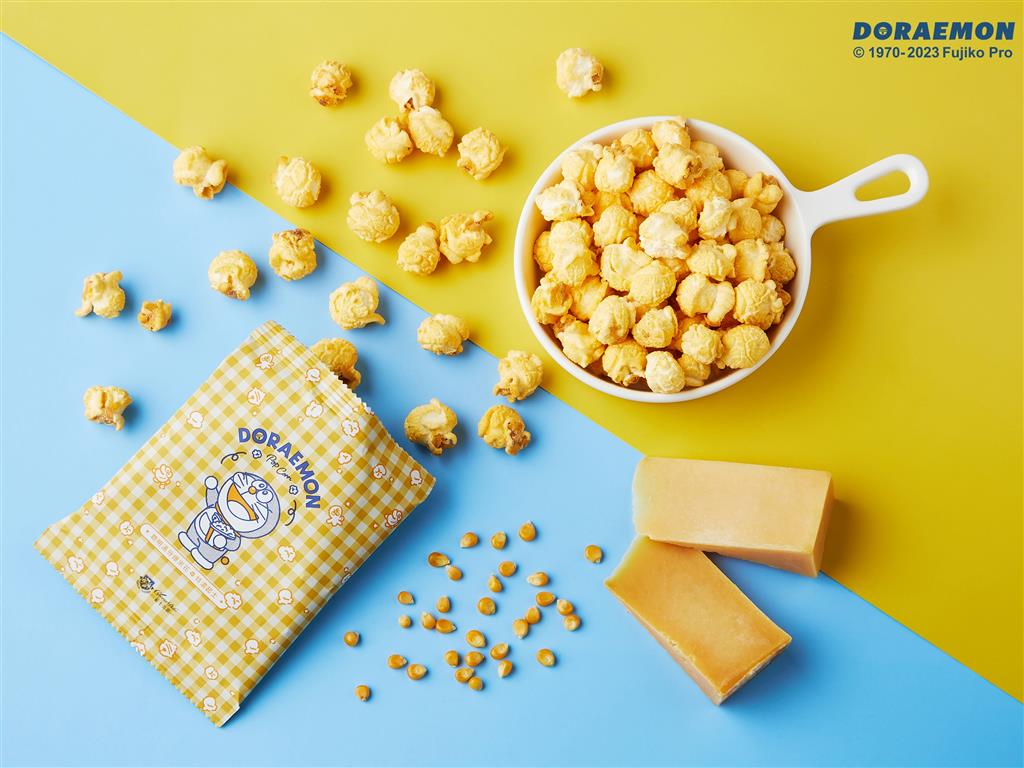 起士公爵與哆啦A夢聯名推出2款爆米花,1甜1鹹完全滿足愛吃爆米花的味蕾。(圖片來源:起士公爵提供)