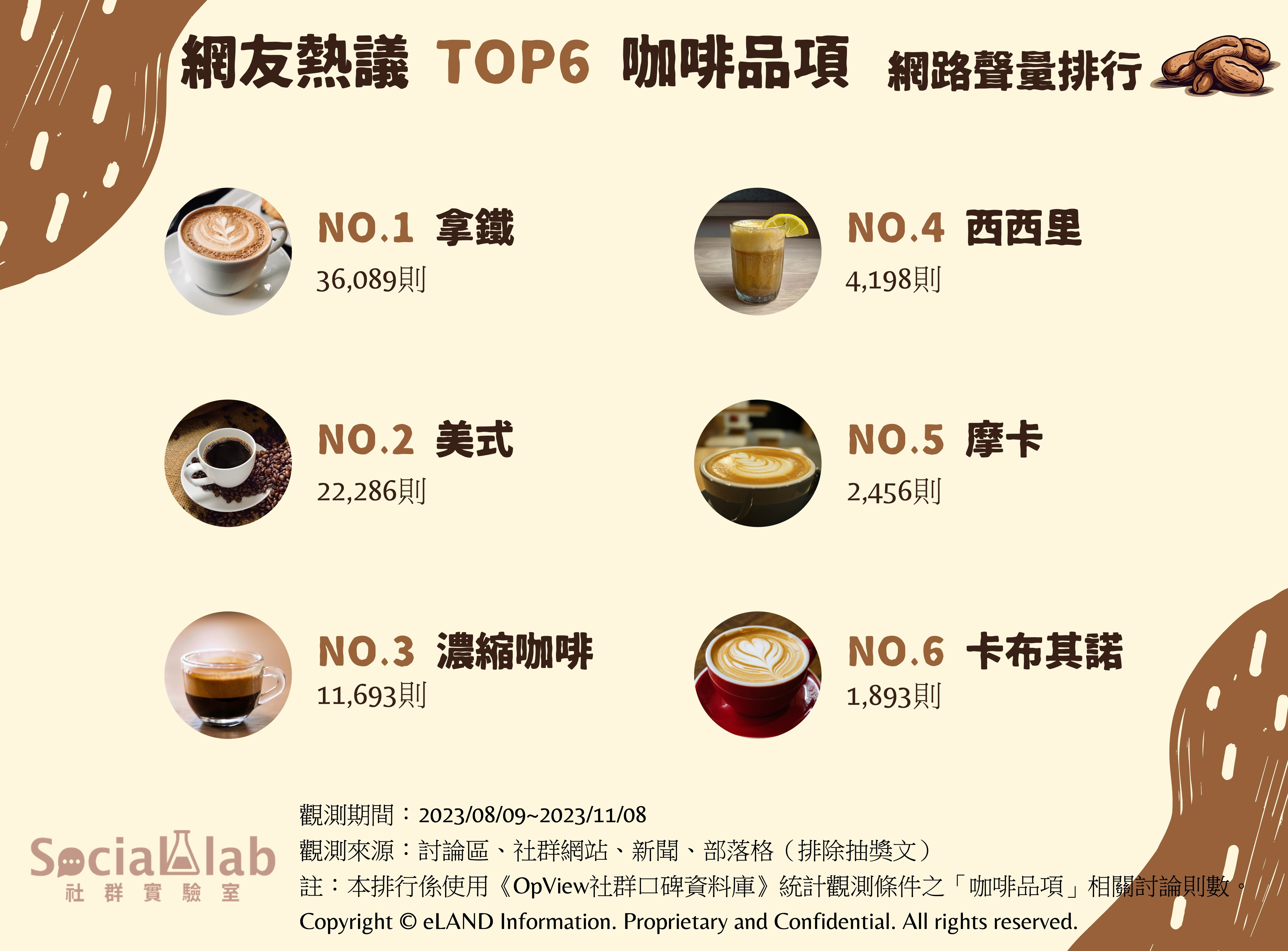 《Social Lab社群實驗室》本次透過《OpView社群口碑資料庫》追蹤近3個月內「咖啡品項」相關話題的網路聲量,帶您了解網友熱議的咖啡品項排行。