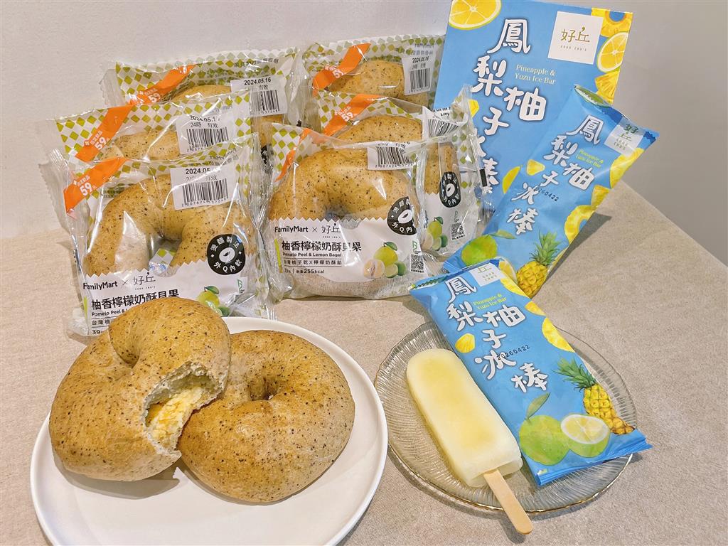 貝果品牌好丘再度聯名全家,推出兩款新品「柚香檸檬奶酥貝果」與「鳳梨柚子冰棒」。柚香檸檬奶酥貝果結合阿薩姆紅茶麵糰、新鮮檸檬汁和黃金柚子乾,三者融合香氣豐富;鳳梨柚子冰棒首度將貝果化作冰棒,酸甜香氣每一口都吃得到!