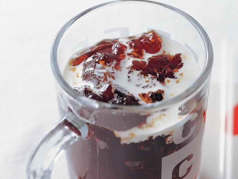 將冷卻凝固的咖啡凍攪碎,依喜好淋上赤藻糖醇液或咖啡用奶油。